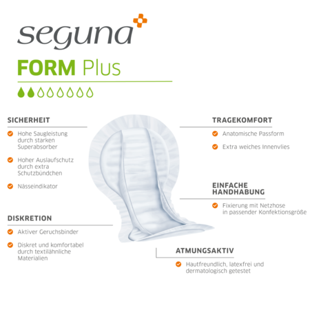 Die SEGUNA Form Plus Vorlagen eignen sich bei mittlerer Inkontinenz und Doppelinkontinenz.